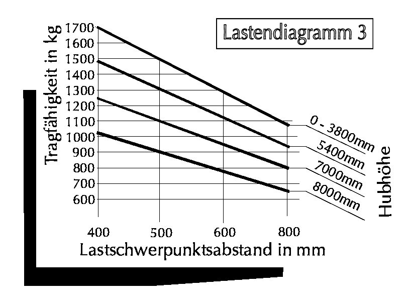 Jeder Stapler hat ein eigenes Lastendiagramm. Du findest es üblicherweise neben dem Fahrersitz - dort kannst du es von der Kabine aus ablesen.